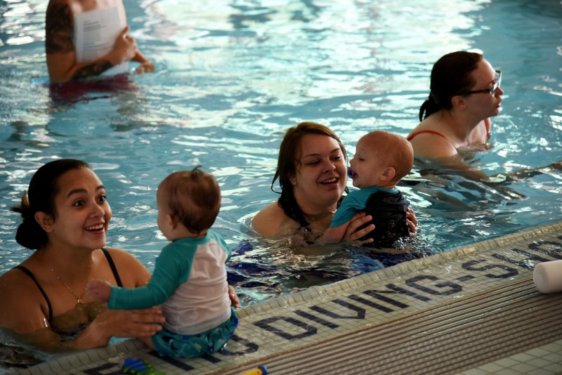 The base aquatic facility has two pools available; A main swimming pool and a children wading pool. Only patrons 16 years of age or older that can swim and children between the ages of 10 and 15 that have passed the deep end proficiency test are authorized past the five foot mark without specific supervision. Children under the age of 10 who have passed the deep end proficiency test may be in the deep end and only under supervision of a patron who is 16 years of age or older and who is capable of swimming .