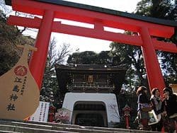 Enoshima Shrine is a Shinto shrine in Enoshima, Fujisawa, Kanagawa, Japan. The shrine is dedicated to the worship of the kami Benten.[1] Enoshima-jinja consists of three shrines, Hetsuno-miya, Nakatsuno-miya and Okutsuno-miya. Per legend, 12th century Japanese ruler Hojo Tokimasa visited the shrine to pray for prosperity, and there received a prophecy from a mysterious woman, who also left behind three scales, which became