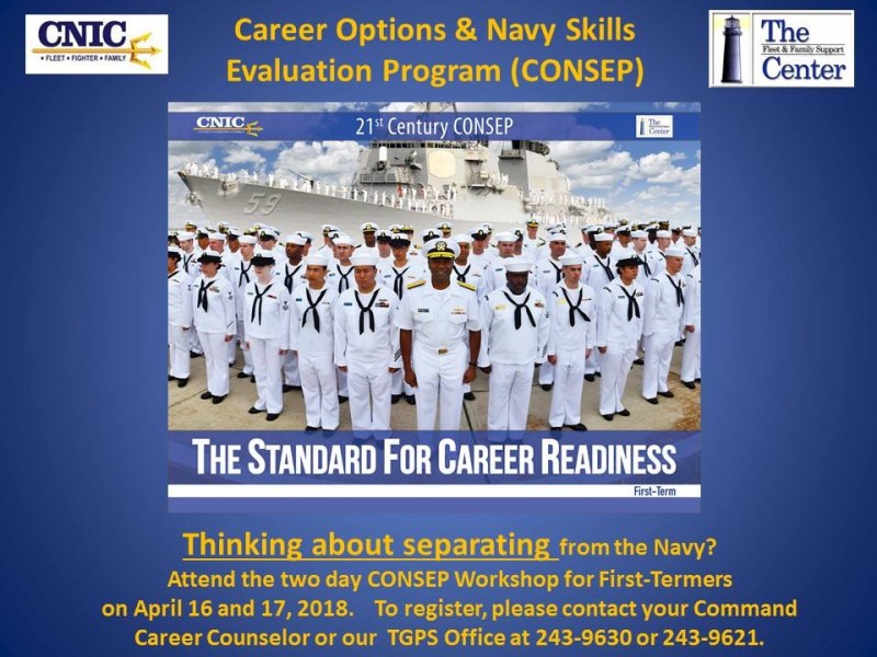 The standard for career readiness, this two-day course was developed to provide Navy Career Counselors and Fleet & Family Support Center (FFSC) staff and opportunity to guide first-term and mid-career Sailors through the career opportunities available in the Navy in the civilian sector. This course will enhance mission readiness by giving Sailor the tools to make informed decisions about their educational and career options.