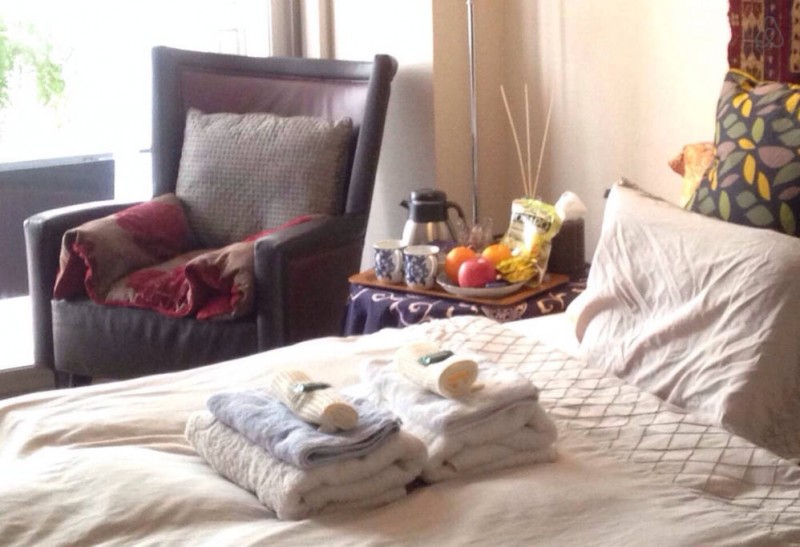 2 bed rooms: 1 single + 1 double in new sophisticated flat. This page is for double room. The single room is registered on another page. 1 week or more longer stay will be discounted. Enjoy Japanese style deep bathtub and steamed sauna : )