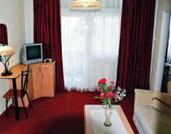 Guests will find relaxation and comfort in the hotel's one- or one-and-a-half-room apartments, each with a fully equipped kitchen, dining room, TV with satellite channels, radio, and telephone.
