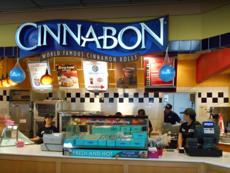 Counter-serve chain serving cinnamon rolls plus other baked goods & specialty frozen beverages. Cinnabon is an American chain of baked goods stores and kiosks, normally found in areas with high pedestrian traffic such as malls, airports, and rest stops. The company's signature item is a cinnamon roll.